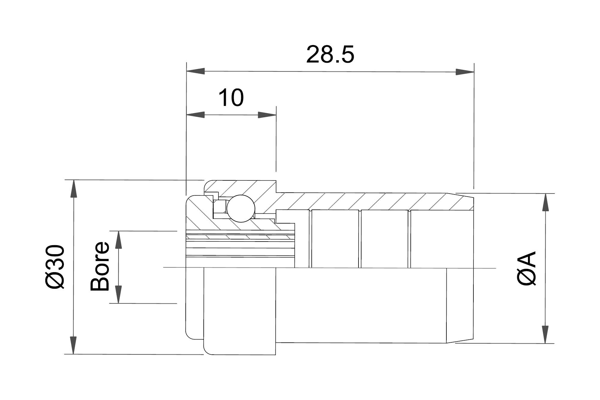 • Load Capacity 7kg• Grey Polypropylene inner and outer race.• Stainless steel balls caged as standard• Suits: - 30 x 1.8 Plastic Tube (302) - 32 x 1.5 Galv or SS (322)• Option: 6 , 8, 10mm Bore