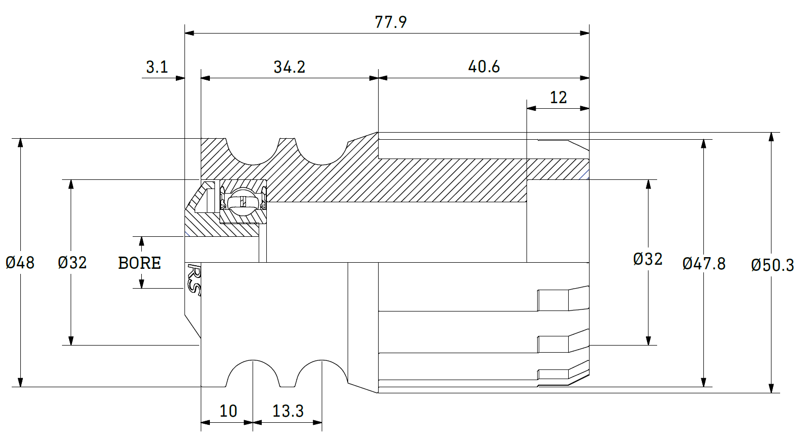 O-Band Pulley for in 50mm and 60mm Diameter Rollers.