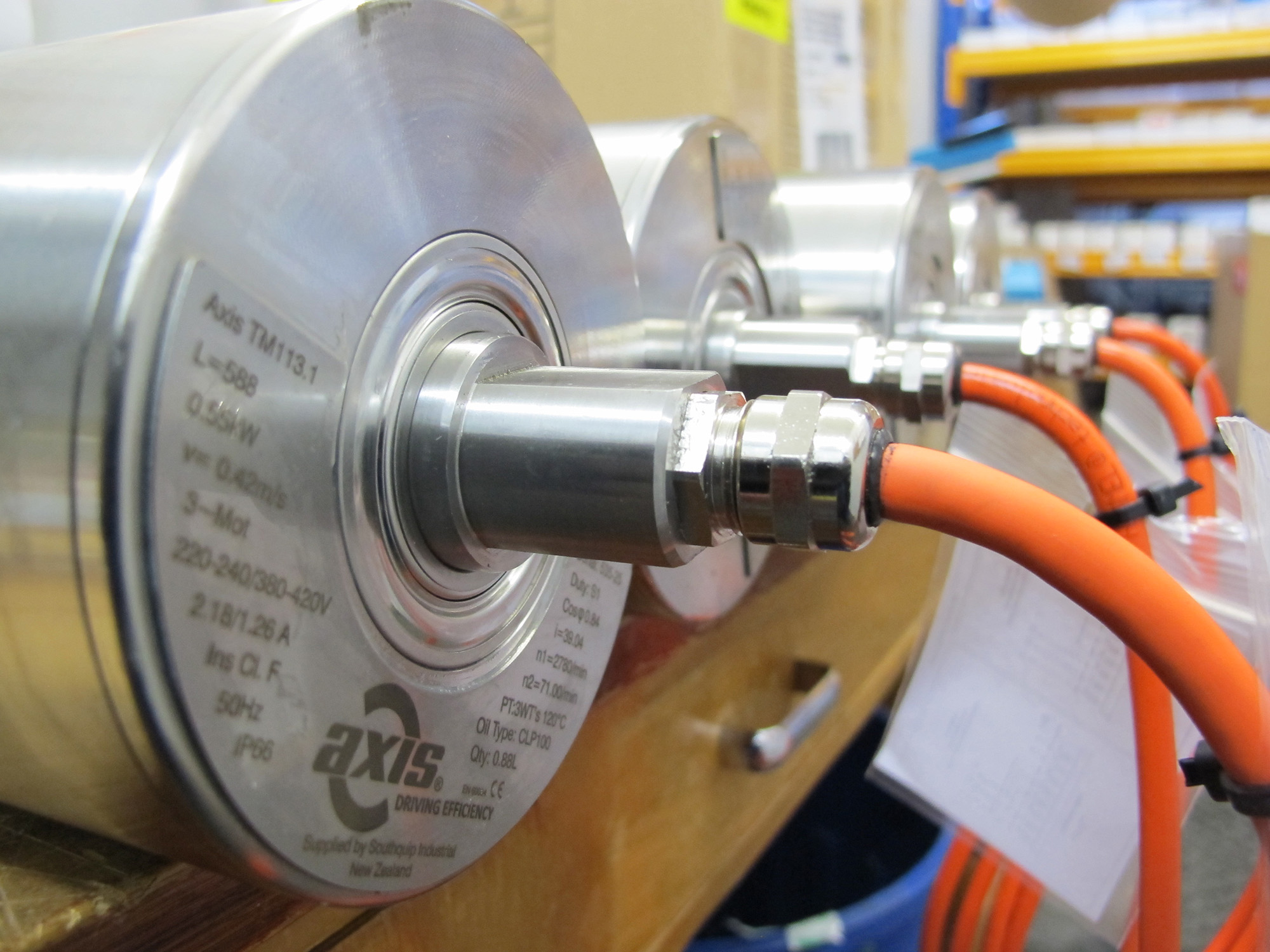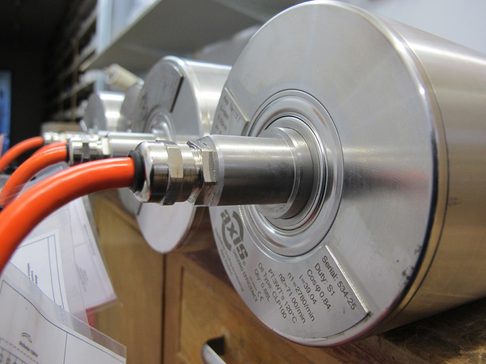 The Axis drive drum is for those situations where you are tight for space and cannot have a conventional motor and gearbox on the shaft of your belt conveyor. They can be used in many situations including, situations where there is powder that could run the risk of being explosive!
