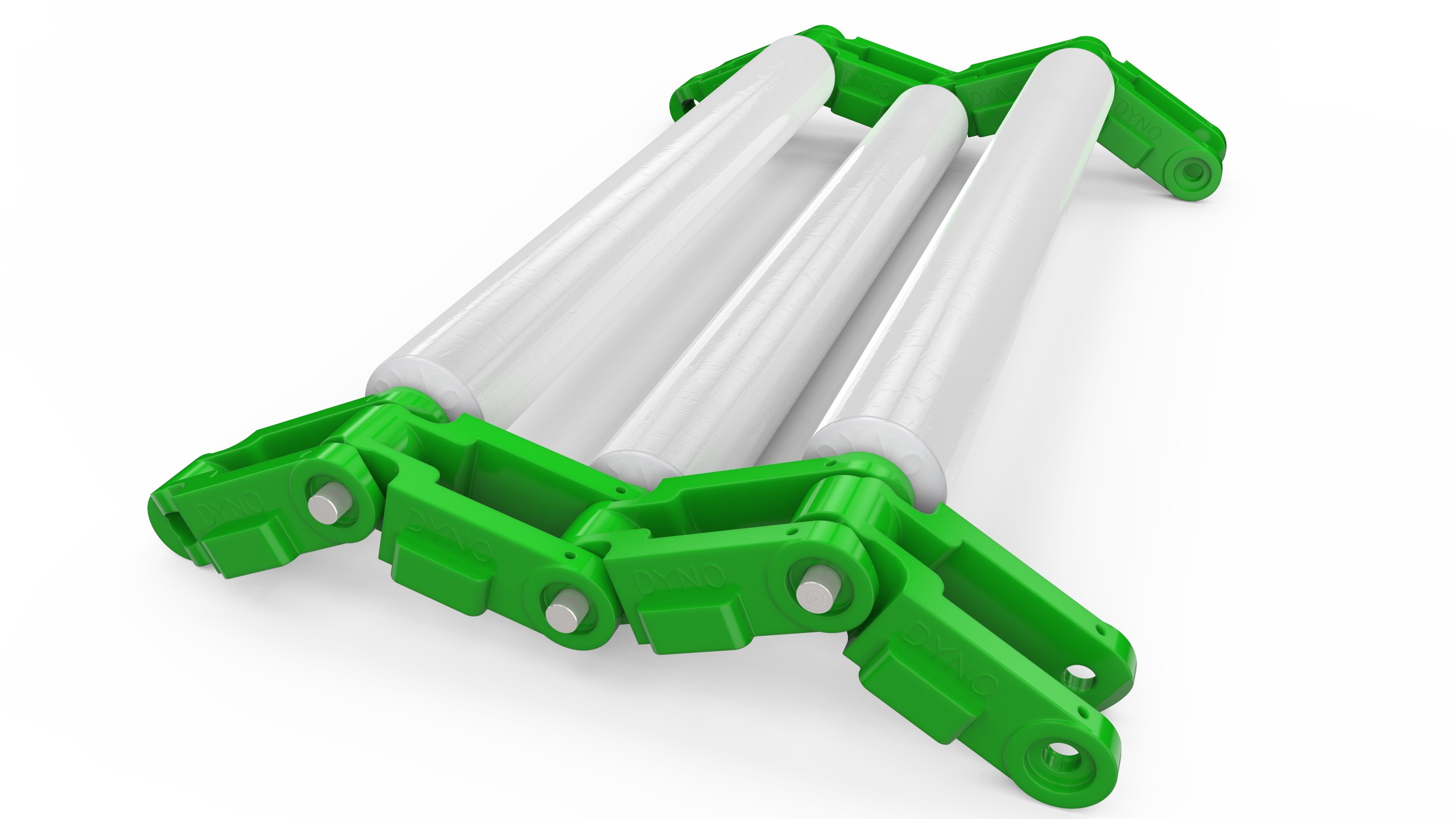 Exclusive to Dyno, the conveyor chain is manufactured from Acetal, and has the advantage of requiring no-wear strip with low co-efficient of friction and is ideal for any challenging product movement. Dyno offers a range of chain options and colours to suit your needs.