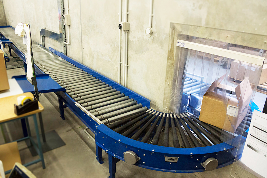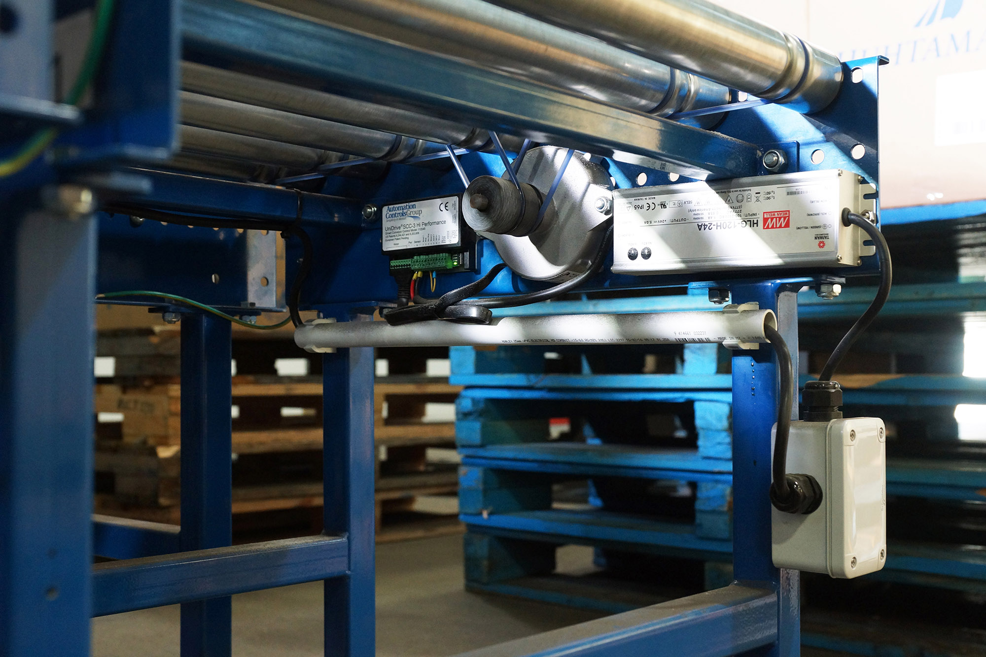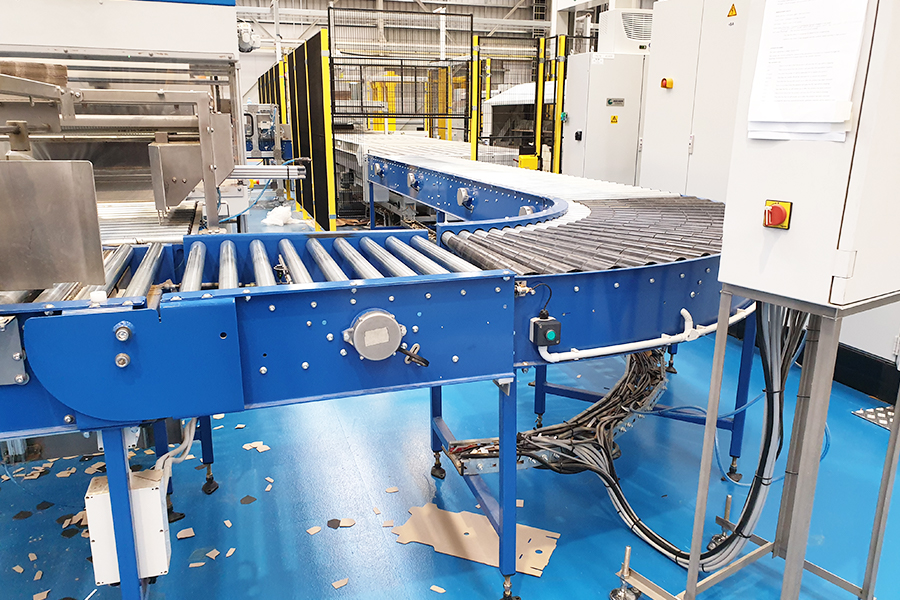 A Dynodrive motor is fitted at regular intervals along the length of the conveyor, this enables the loads to be automatically controlled in ‘zero pressure zones’.