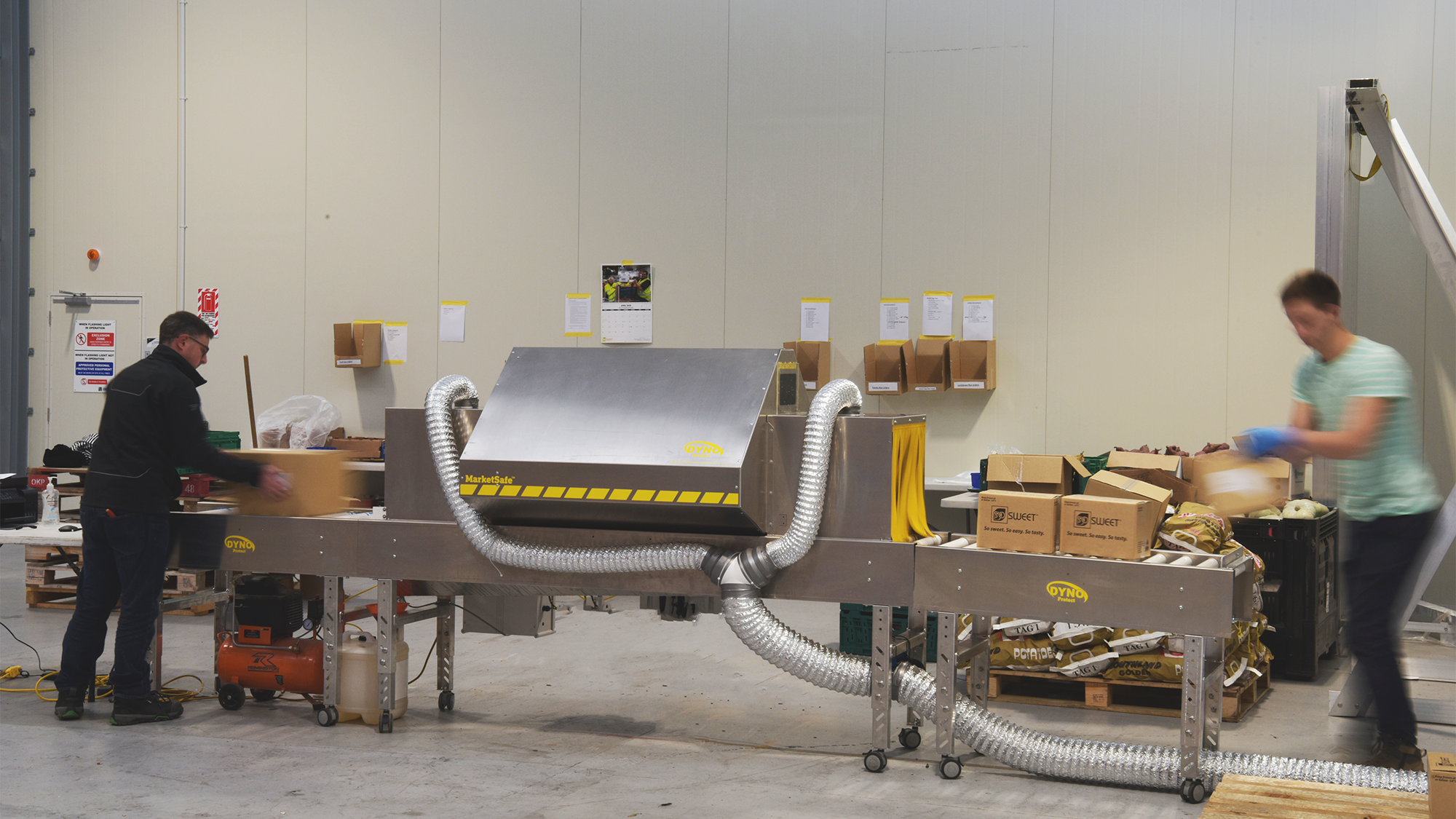 • 2.4m Gravity Roller Conveyor Outfeed with driven section at start to pull product from tunnel.