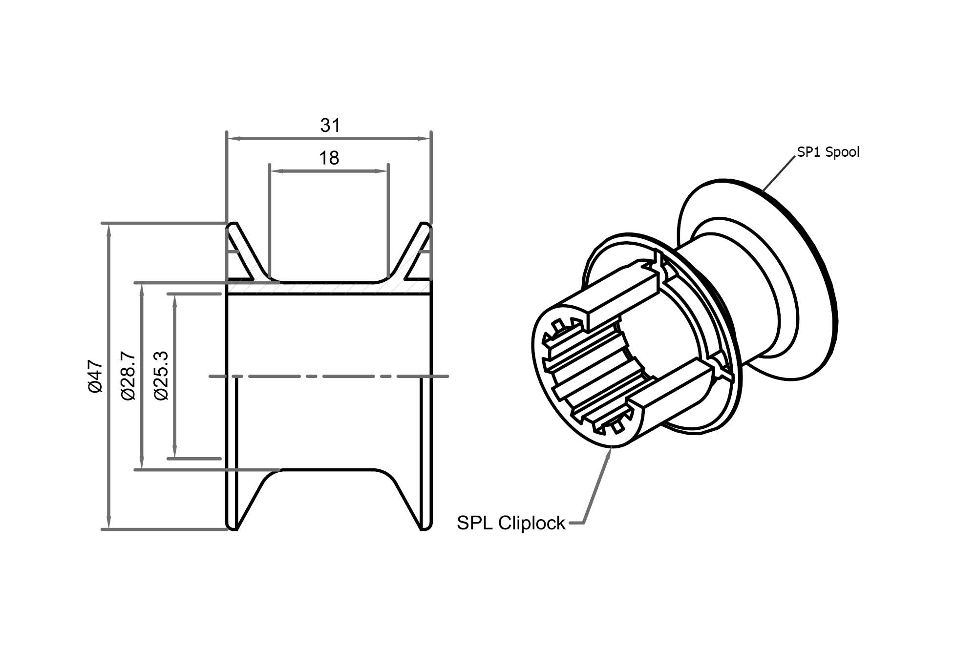 • For 25mm Ø Shaft• Acetal• 31mm wide• Ø 47mm